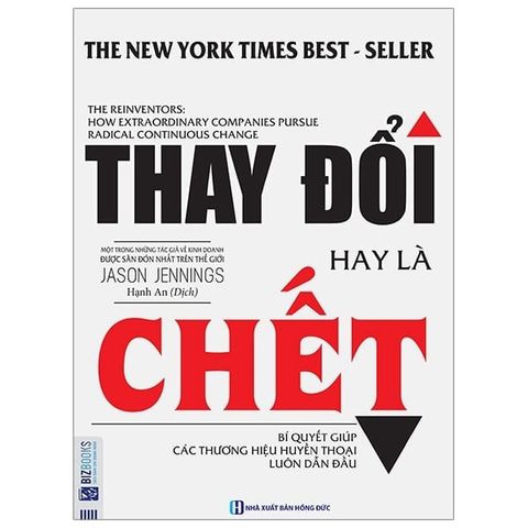 Thay đổi hay là chết – Bí quyết giúp các thương hiệu huyền thoại luôn dẫn đầu Nếu bạn không thoải mái với suy nghĩ bản thân đã trở nên lỗi thời, hãy đọc cuốn sách này! “Thay đổi hay là chết” mang đến những cách thức mới lạ để đổi hướng, xoay tròn và giải quyết con đường của bạn trong tương lai. Đây là một cuốn sách có nhịp độ nhanh, viết rất hay về tầm quan trọng vượt trội của sự thay đổi, đổi mới và kiến tạo – những yêu cầu chính để bất kỳ tổ chức nào cũng có thể thành công lâu dài.